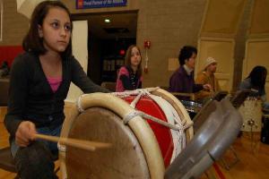 Sofia Gonzalez helped to keep the beat with more than a dozen others under the direction of drummer Chico Perez.