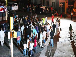 The movie crew was here to film the scenes leading up to the crash. Movie personnel were very courteous and got permission from most of the neighbors and businesses ahead of time to film here. Finally, at about 11:30 p.m. the crew was ready and the crash was filmed. While not as spectacular as I am sure it will be in the actual movie, it was still a fun night out with my neighbors and friends. (Photos by Duane Atter.)